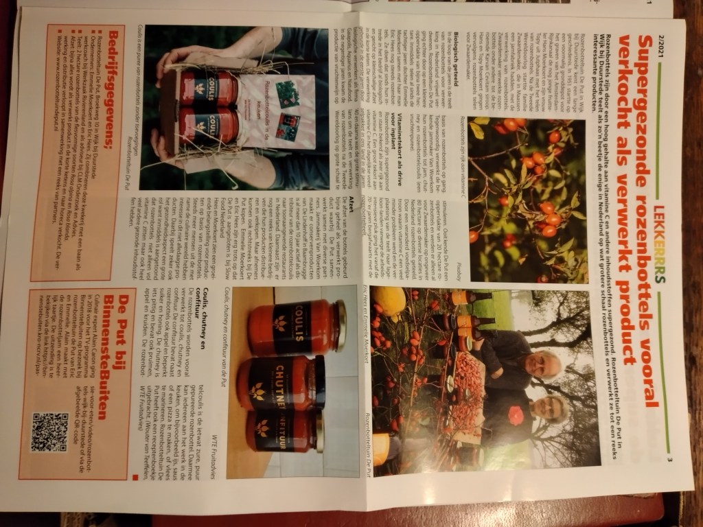 We kijken terug op een geweldige oogst, mooie plukdagen en een geslaagde afzet. Gelukkig hebben we afgelopen winter ruim 200 nieuwe rozenbottelstruiken aangeplant, zodat we vanaf volgend jaar nog wat meer en langer puree kunnen leveren.